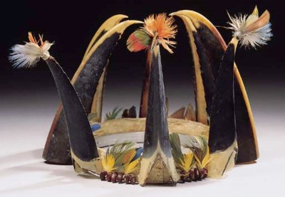 A RARE TOUCAN BEAK AND FEATHER HEADDRESS , JIVARO OR ... (Lawrence Hayes)