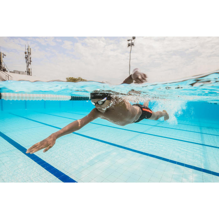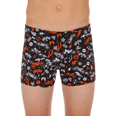 MAILLOT DE BAIN GARÇON BOXER 500 FIT ALL MOBOU ORANGE NOIR